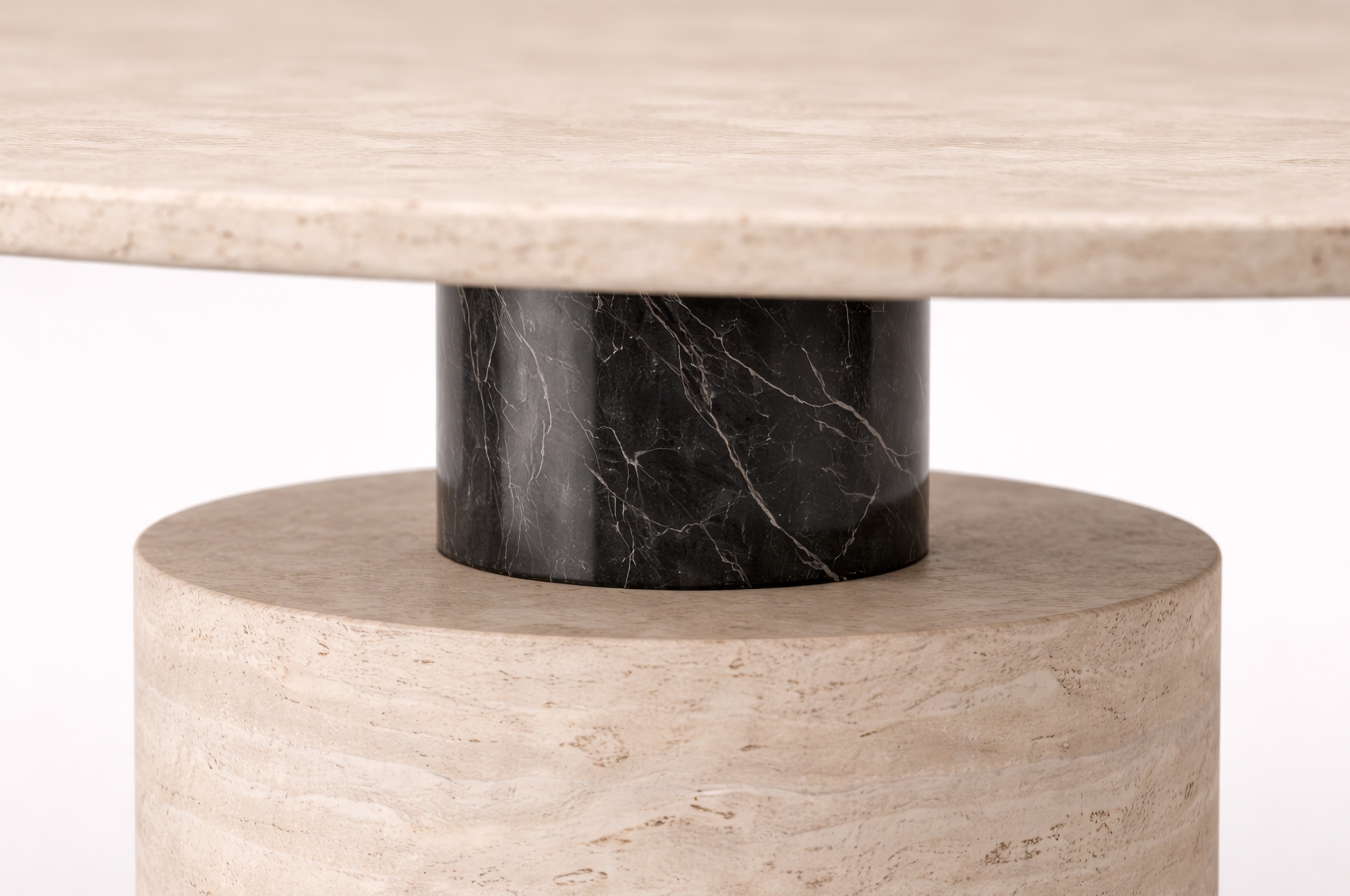 Her ORIS masa, doğadan elde edilen traverten taşının kendine özgü damar yapısı ve doğal renk tonlarıyla benzersizdir. Dayanıklı yapısı ve zamansız görünümüyle uzun yıllar kullanılmak üzere tasarlanmıştır.