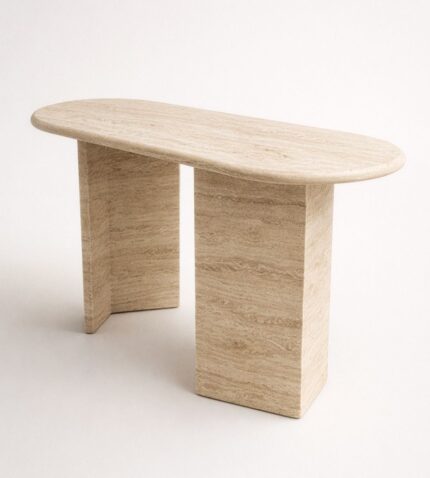 ARCEN Traverten Orta Sehpa, oval formu ve yumuşak hatlarıyla doğal taşın güçlü yapısını dengeli bir tasarım diliyle yorumlar. Akıcı silueti, yaşam alanlarında sakin ve sofistike bir merkez oluşturur.