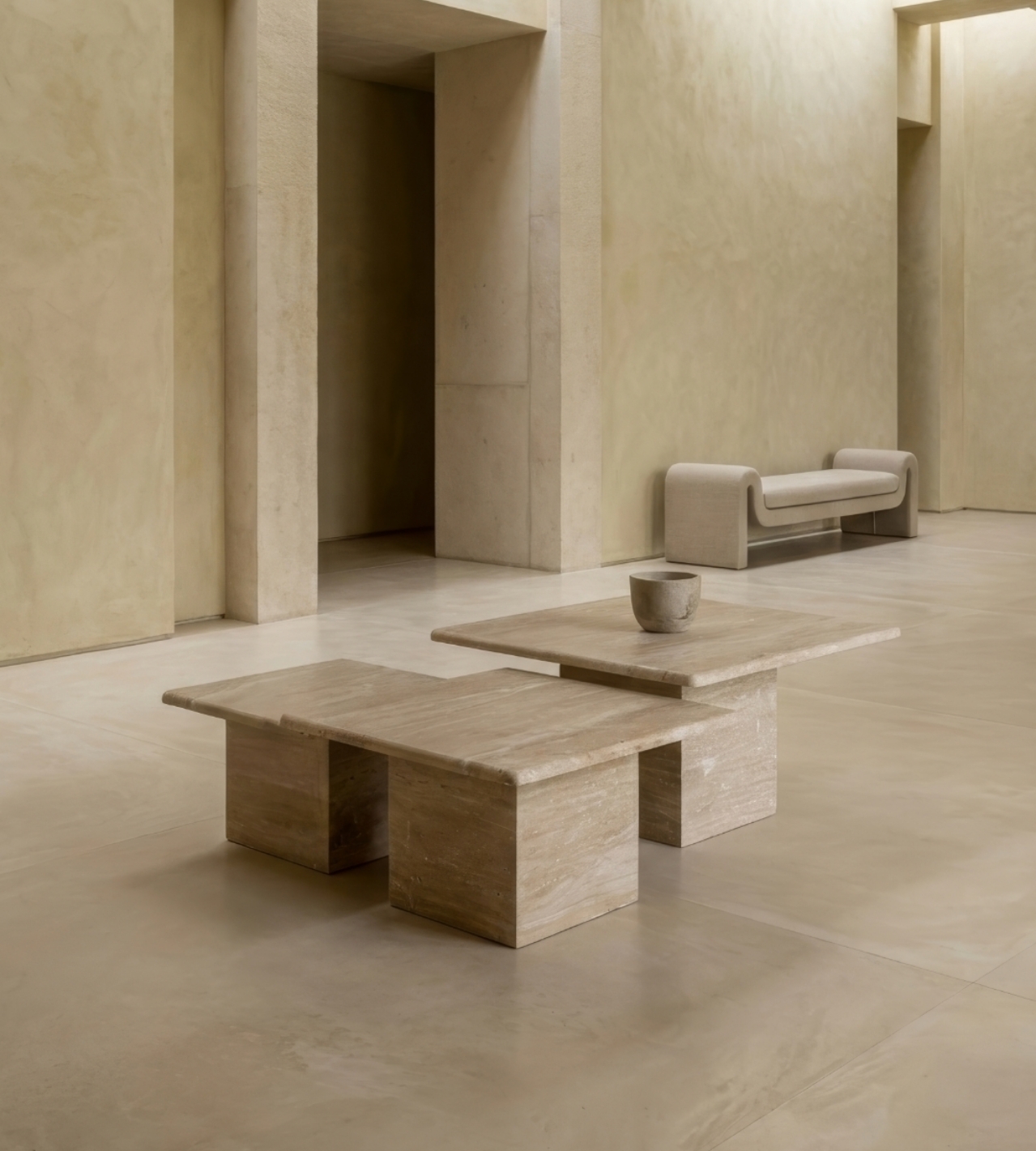 Traverten Sehpa Seti ile Modern ve Doğal Uyum